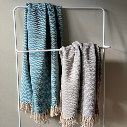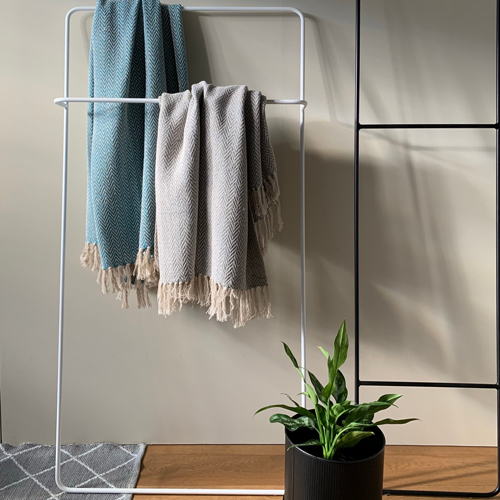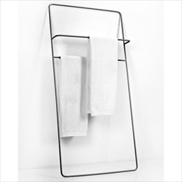 壁に立てかけて使う、シンプルでスタイリッシュなタオルラックです。