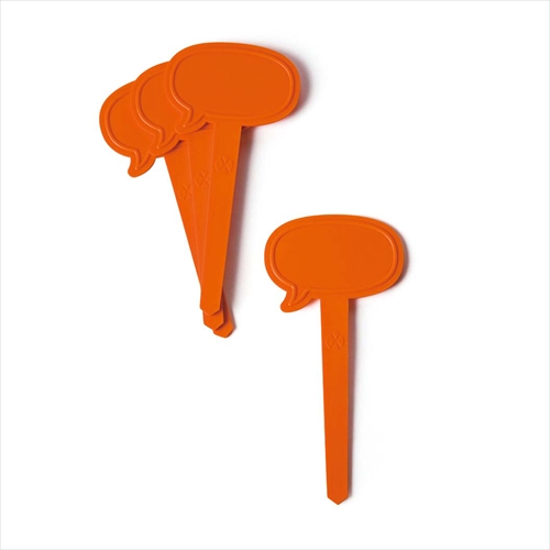 ふきだしの形をしたガーデンラベルです。 ガーデン用品としてだけでなく、キッチングッズとしても活躍できます。 [サイズ]W10xD0.5xH20.5cm [材質]ポリプロピレン [容量]4本入り [カラー]オレンジ