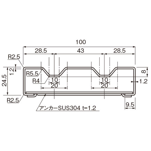 [サイズ]厚み1.2mm、L1829mm [本体重量]3.6kg [付属品]戸車 DPM-0452 ※付属戸車個数はレールの長さによります。 [材質]SUS304 [仕上]ヘアーライン ●備考:幅100引違用、戸車 4 個付 【ご注意】レール取付方法:(1)レールを裏返して、モルタルを空間ができないように注意し、十分に流し込んで半乾きになるまで待ってください。(2)レール据付位置に敷モルタルをし、あらかじめモルタルを流し込み湿った状態で定位置へ正確に据付けてください。(3)レール据付の際には水平を必ずとって、ていねいに行ってください。レールの据付け以前に裏面にモルタルを充填しておき、正確に取付けてください。木製堅枠との組合わせ方法は、ご要求により異なりますので、設計上の長さ寸法が決定してから指示してください。
