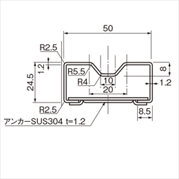 [サイズ]厚み1.2mm、L3640mm [本体重量]4.2kg [付属品]戸車 DPM-0452 ※付属戸車個数はレールの長さによります。 [材質]SUS304 [仕上]ヘアーライン ●備考:幅50片引用、戸車 4 個付 【ご注意】レール取付方法:(1)レールを裏返して、モルタルを空間ができないように注意し、十分に流し込んで半乾きになるまで待ってください。(2)レール据付位置に敷モルタルをし、あらかじめモルタルを流し込み湿った状態で定位置へ正確に据付けてください。(3)レール据付の際には水平を必ずとって、ていねいに行ってください。レールの据付け以前に裏面にモルタルを充填しておき、正確に取付けてください。木製堅枠との組合わせ方法は、ご要求により異なりますので、設計上の長さ寸法が決定してから指示してください。