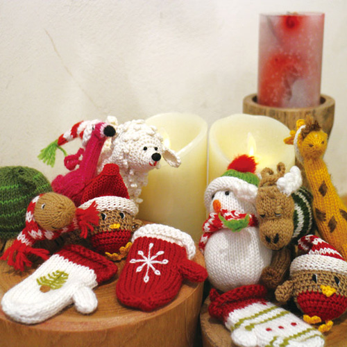 ニットで編まれたオーナメントは、温かい雰囲気でクリスマスシーンを賑やかに演出してくれます。