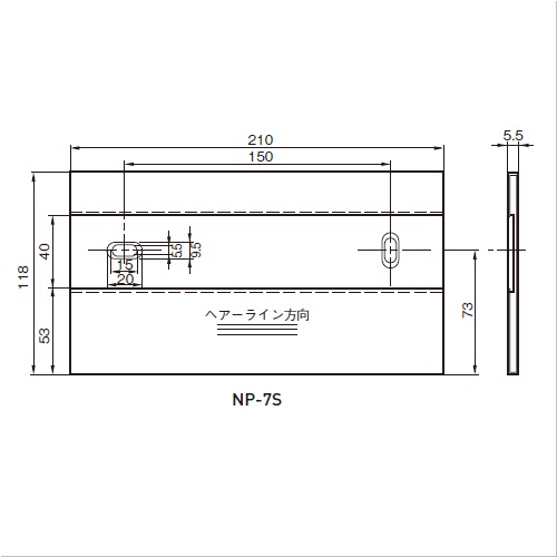[サイズ]118×210×5.5mm [本体重量]400g [材質]SUS304 [仕上]ヘアーライン(光沢クリアー) [備考]名札:透明2mm厚、0.5塩ビグレー