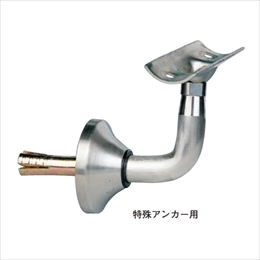 手すりブラケット(支持金具)としてご使用いただけます。 持ち出し方向、10mmの許容範囲で調節可能です。 受皿の角度調節がドライバー1本で容易にできます。 [サイズ]R22.5mm、A38mm、B16.5mm [本体重量]248g [材質]SUS304 [仕上]ヘアーライン ●パイプ径:45 ●耐荷重(取付ピッチ900以内):120kgf 【ご注意】ブラケット取付けピッチは、900mm以内としてください。本体を特殊アンカーに取付ける際は六角穴付止ネジ(付属)2本をしっかり締めてご使用ください。平受タイプも製作可能です。お問い合わせください。