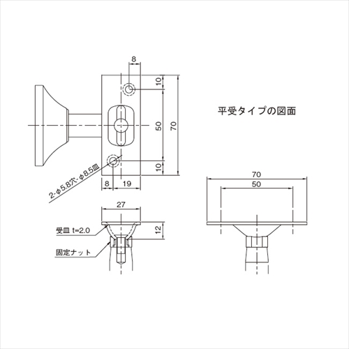 手すりブラケット(支持金具)としてご使用いただけます。 持ち出し方向、10mmの許容範囲で調節可能です。 受皿の角度調節がドライバー1本で容易にできます。 [サイズ]R24.3mm、A40mm、B17.5mm [本体重量]250g [材質]SUS304 [仕上]ヘアーライン ●パイプ径:48.6 ●耐荷重(取付ピッチ900以内):120kgf 【ご注意】ブラケット取付けピッチは、900mm以内としてください。本体を特殊アンカーに取付ける際は六角穴付止ネジ(付属)2本をしっかり締めてご使用ください。平受タイプも製作可能です。お問い合わせください。