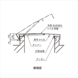 先付タイプです。 ガスダンパーにより安全に開閉できます。 [本体重量]16000g [材質]SUS304 [仕上]研磨 ●ダンパーテスト結果 開閉テスト:3万回開閉にて異常なし 温度テスト:高温:80℃ 48時間放置異常なし 低温:-20℃ 30時間放置異常なし
