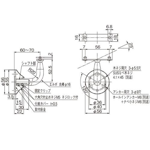 ・コンクリート取付けの場合は、M6コンクリートアンカーをご使用ください。 ・BL認定品としてご利用される場合はブラケットBL-60をご使用ください。