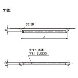 多用途にご利用いただけるI型手すりです。 BL認定品です。 [サイズ]φ34mm、A600mm、B57mm [本体重量]1000g [付属品]SUS六角コーチボルト8×40:2本 平座金:2枚 ばね座金:2枚 位置決め補助・保護シート:2枚 [材質]SUS304・軟質塩ビ [仕上]軟質塩ビ被膜 [耐荷重]60kgf