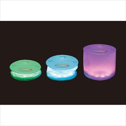 1個で8役カラーチェンジできます。 円筒形の空気で膨らませて使うLDEソーラーランタンです。 使用時:直径12.5cm×高さ11.2cm 折り畳み時:高さ2.5cm 重量:約113g 本体素材:ラメ入りタイプ RGB LED10個 リチウム電池内蔵 直射日光で約8時間で満充電 満充電で約6〜8時間連続点灯