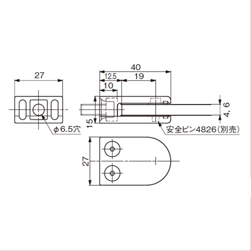 [サイズ]表記による [本体重量]52g [材質]亜鉛合金(ZDC) [仕上]ダルクロムめっき [適応ガラス厚]6 [付属品]六角穴付ボルト(特殊)M6×10(取付ボルト)