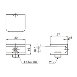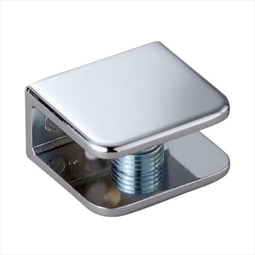 はさみ込みタイプのガラス棚受です。 [本体重量]35g [材質]ZDC [仕上]クロームメッキ [適応ガラス厚]6〜10mm [耐荷重](棚板1枚当り)2kgf
