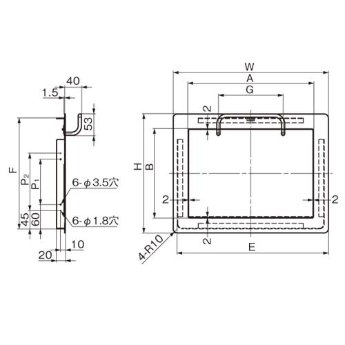 [サイズ]A:234、B:160、W:308、H:234、E:288、F:214、G:120、P1:60、P2:90、X:289、Y:215 [材質]SUS304 [仕上]ヘアーライン [質量]540g
