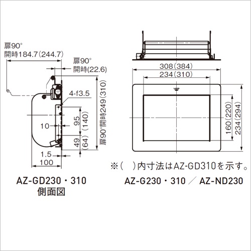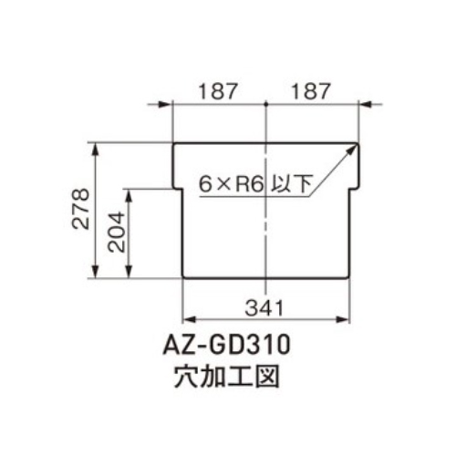 [サイズ]A:310、B:220、W:384、H:294、C:64、D:310、E:244.7、P:140 [材質]SUS304 [仕上]ヘアーライン [質量]2236g