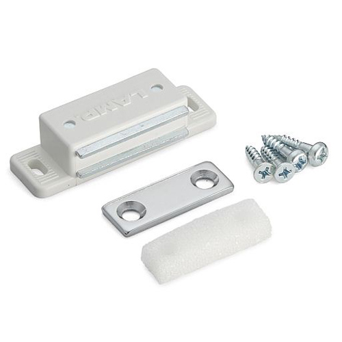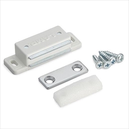 [本体重量]26g [付属品]スチール+字穴付皿木ネジ2.9×13:4本 [材質]ポリブチレンテレフタレート樹脂(PBT)・スチール [吸着力]2.4kgf [備考]片開き用