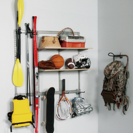 ・フック、棚柱、棚受、レールを用途に合わせて自由に組み合わせできる、高耐荷重壁面収納システムです。 ・タテ・ヨコレイアウト自由自在です。 ・品物を吊るすフック、レールを棚柱に固定するアダプターはセーフティーレバー付きで脱着を簡単にし、フックやレールの脱落をしにくくし、安全性を高めています。