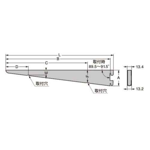 [材料]鋼 [仕上/色]粉体塗装/チタン色 [サイズ]L:184、A:49、B:174、C:131、D:30、E:13、F:37 [耐荷重]162kgf [付属ねじ] ・十字穴付きなべタッピンねじ4×25 ・十字穴付きなべタッピンねじ4×50
