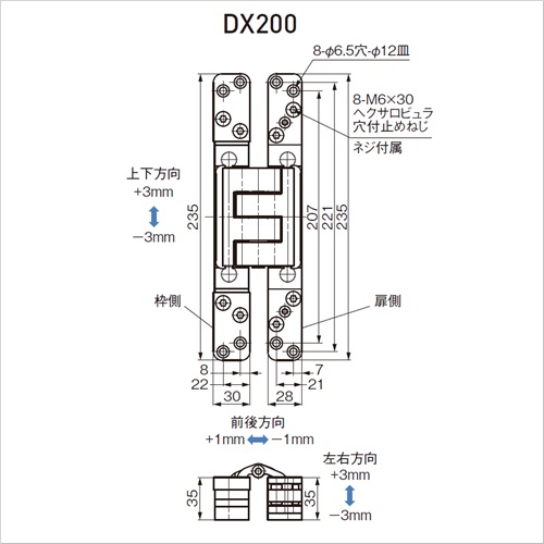 [扉幅]1000以下 [扉高さ]2100以下 [耐荷重]200kgf [開き角度]180° [質量]1630g [仕上]サテンニッケルめっき [材料]鋼