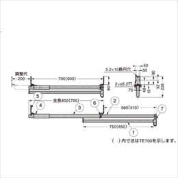 ・スペースが有効活用できる、スライド式のコートハンガーです。 ・押入れ、収納ユニット家具など、奥行の深い場所での使用に最適です。 ・奥行800mmのTE800と奥行700mmのTE700の2種類があり、それぞれ200mmの調整台があります。 ・着替えに便利なように取手部にもハンガーが掛けられます。