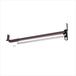 [本体重量]2.7kg [付属品]スチール十字穴付丸木ネジ 4.5×20:6本 [材質]スチール [仕上]クロームメッキ焼付塗装 [全長]800mm [スライド幅]570mm [ブラケット取付面奥行寸法]700~900mm [最大吊下荷重]20kgf