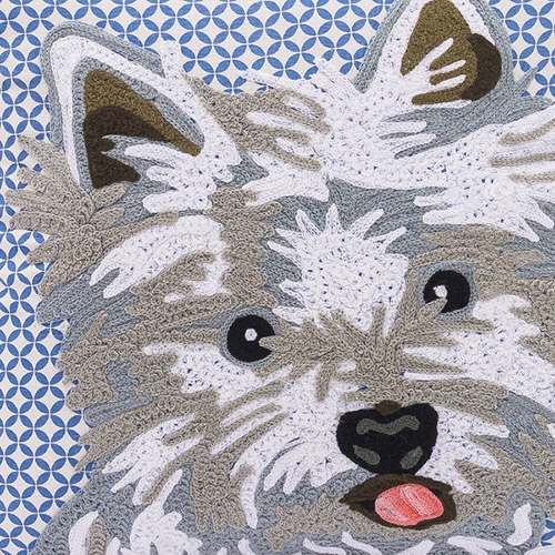 テリアの柔らかな毛並みを白やグレーのグラデーションで表現したこだわりのデザイン。