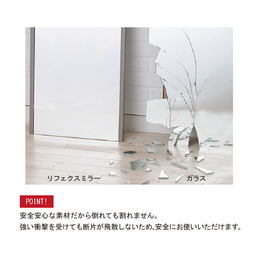 ・「 リフェクスミラー」は特殊加工した高精度のポリエステルフィルムをパネル状にしたグラスレスミラーです。
