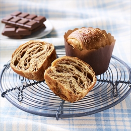 [原材料]小麦粉、チョコレートフラワーペースト、ファットスプレッド、砂糖、準チョコレート、マーガリン、卵、乳等を主要原料とする食品、食物繊維、食塩、パン酵母、果糖ぶどう糖液糖/加工でんぷん、乳化剤、香料、増粘多糖類、pH調整剤、着色料(カロチン)、(一部に小麦・卵・乳成分・大豆を含む)
