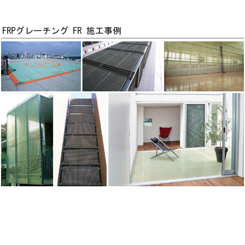 ・格子状のため軽くて強く、採光、通気性に優れています。また、比強度は、鉄(鉄鋼)5.4、アルミニウム7.0に対し、FRPは15です。