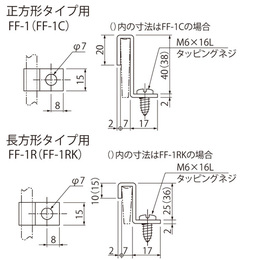 [品番/呼称]FF-1、FF-1R [サイズ]表記による [材質]SUS304 [ご注意] ・前ページのFRPグレーチングFR用の取付・受枠金具です。 ●備考:取付用