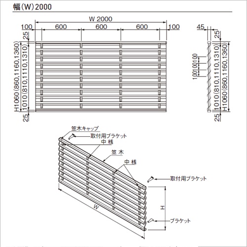 ・外からの視線をシャットアウトし、プライバシーを守ります。 ・光線透過率に優れていますので、自然な光をたっぷりと採光します。 ・雨や雪に強く、オールシーズン活躍します。 ・風通しがスムーズで、空気も新鮮です。 ・ポリカーボネート素材の採用で、耐衝撃性・耐久力もアップしました。 [色]ブロンズ [サイズ]H560mm、W2000mm [材質]アルミ・ポリカーボネート [仕上げ]半透明マット [ご注意] ・品番のブロンズ、ホワイト、ステンカラーは、アルミ材(笠木・中桟)の色です。 ・本体には、取付用ブラケット(出幅100mm、SUS304)、笠木キャップ4個、タッピンビス、ボルト・ナット、テクスネジ一式が付属しています。 ・運搬諸経費は別途お問い合わせください。 ●羽根数:5枚 ●中桟数:4本 ●BK数:4個