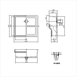 シンプルな形状で、置くだけですぐに使えます。 [色]みかげ [サイズ]450型 [材質]レジンコンクリート [質量]約10kg [容量]約14ℓ [付属品]排水栓1個/ゴム栓1個