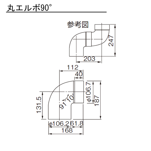 ・ハードコート仕上げの外側塗装はセラミック複合塗料を焼付塗装してあります。 ・縮管付丸エルボ90°もあります。
