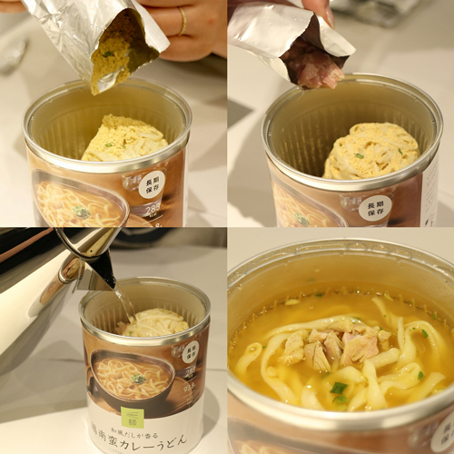 1.白い蓋を外し、缶を開け、袋を2つ取り出してください。 2.袋を開封して中身を缶の中に入れ、熱湯を注水線まで注いでください。(目安量415ml) 3.白い蓋をかぶせ10分待ったあと、よくかき混ぜてお召し上がりください。