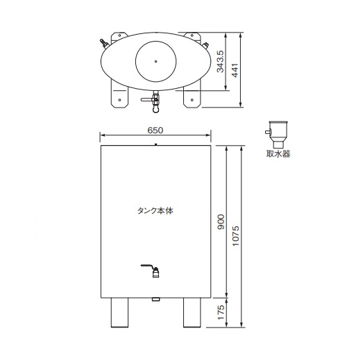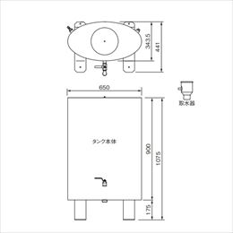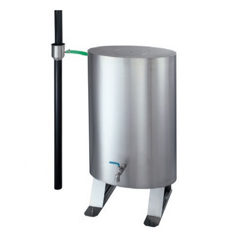 [品番/呼称]150-SW-1001 [サイズ]表記による [材質]SUS304 [仕上げ]ヘアーライン ●板厚:0.8 ●備考:住宅用塩ビ製丸たてとい Φ60用 ●梱包内容: タンク本体 1台 取水器(ゴミ除け付) 1個 ホース 1m ホースバンド 2個 ホースニップル 1個 プラグ 1個 蛇口 1個 シールテープ 1個 ●容量:150リットル 有効容量:120リットル 本体重量:17kg