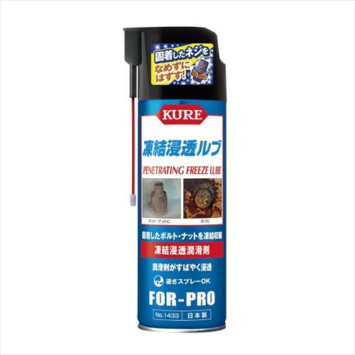 ・凍結収縮してサビを割るフリーズ&クラックアクションとハイスピード浸透潤滑剤のダブル効果により、サビで固着したネジやボルト・ナットをなめずに簡単に取り外すことができます。 ・水置換性にすぐれ、水で濡れた箇所にも効果を発揮します。 ・サビで固着した錠前やヒンジにも使用できます。 ・アルミ・ステンレスなど鉄以外の金属にも使用できます。 ・缶を逆さにしても使用できます。