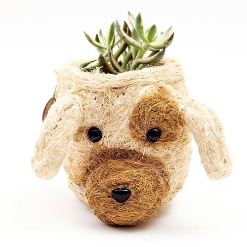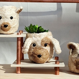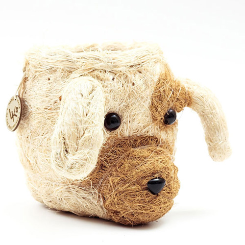 ココヤシの木でつくられたアニマルモチーフのプランター。