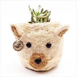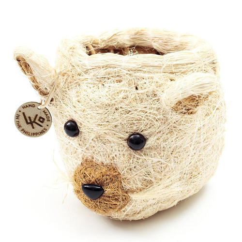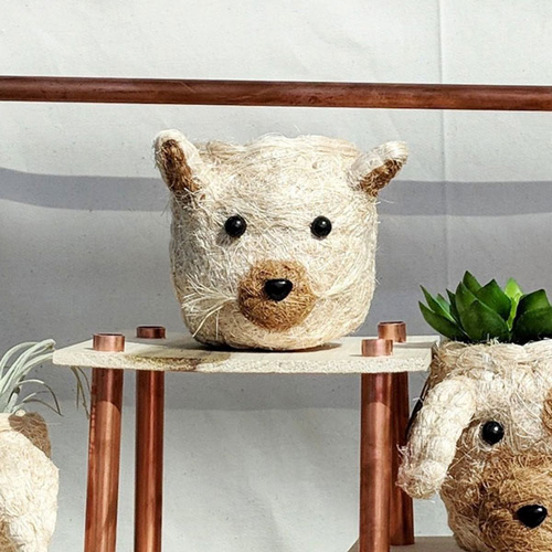 ココヤシの木でつくられたアニマルモチーフのプランター。