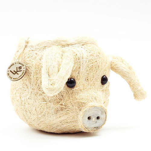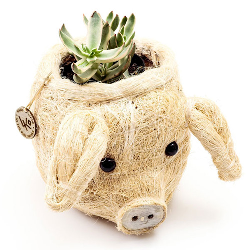 ココヤシの木でつくられたアニマルモチーフのプランター。