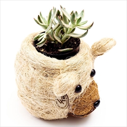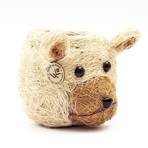 ココヤシの木でつくられたアニマルモチーフのプランター。