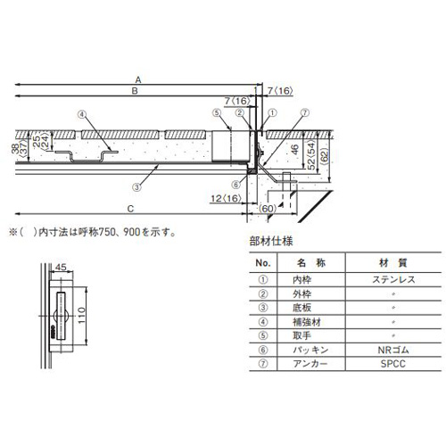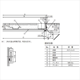 [仕様]モルタル充填 [材質]ステンレス [サイズ]A200、B184、C164、H52、h1:38、h2:25mm [耐荷重]510kgf/m2