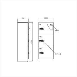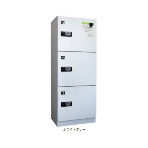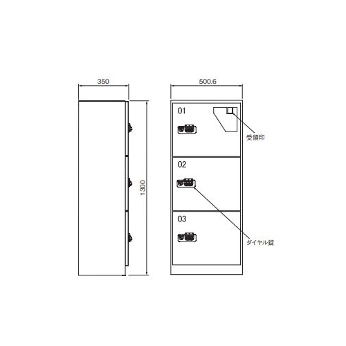 [材質]スチール [仕上げ]粉体塗装 [色]ホワイトシルバー [外寸法]H1300×W500.6×D350mm [ボックス内寸法]H350×W400×D300mm [錠前]4桁暗証番号式ダイヤル錠 [重量]30kg