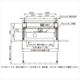 [搭載質量]最大20kg [昇降ストローク]500mm [必要な設置スペース]800×630mm [サイズ]H780×W610×D400mm [重量]28kg ※プロジェクター取付可能スペースは目安です。突起物、コネクター位置などご確認ください