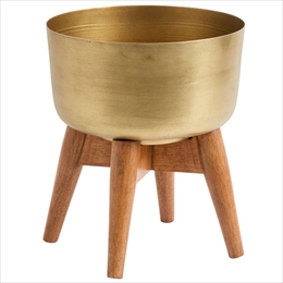 木の土台とゴールドの鉢カバーがセットになったアイテム。