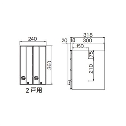 [戸数]2戸用 [タイプ]横型(Y) [材質]SUS304 [仕上げ]No.4 [サイズ]H360×W240、D318mm [備考]フラップ黒 [重量]4.4kg