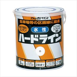 ・コンクリート、アスファルト面の駐車場等の区分線に最適です。 ・速乾で交通開放が短時間で可能です。 ・速乾タイプで塗装後30分で通行が可能です。(乾燥時間:夏期30分、冬期1時間) ・車両の重圧、磨耗に長時間耐えます。 ・水性ハードラインは、水性で安全です。取扱い簡単な区画線塗料です。 ・区画線の抹消用には、ライン消し用黒をお使いください。 ・ホルムアルデヒト放散等級F★★★★ 日本塗料工業会登録番号:A03199 ・つや消し2回塗り
