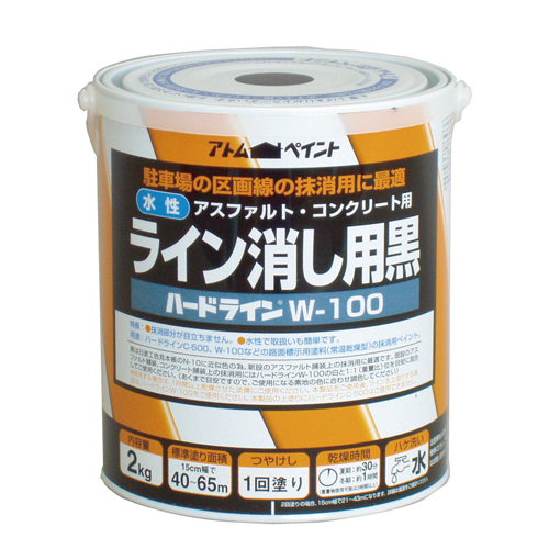 ・コンクリート、アスファルト面の駐車場等の区分線に最適です。 ・速乾で交通開放が短時間で可能です。 ・速乾タイプで塗装後30分で通行が可能です。(乾燥時間:夏期30分、冬期1時間) ・車両の重圧、磨耗に長時間耐えます。 ・水性ハードラインは、水性で安全です。取扱い簡単な区画線塗料です。 ・区画線の抹消用には、ライン消し用黒をお使いください。 ・ホルムアルデヒト放散等級F★★★★ 日本塗料工業会登録番号:A03199 ・つや消し2回塗り