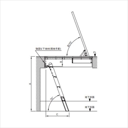 [サイズ] 床面~地下床面高さ(A)1613~1863mm、床面~受けパイプ取付高さ(B)床面より-248.5mm、設置スペース~壁(C)666~757mm