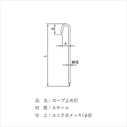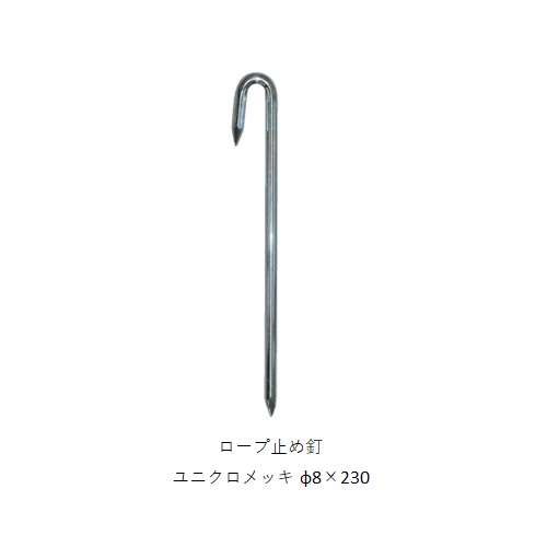 ・駐車場等の境界線トラロープ止めに。 ・ゴルフ場、運動会、イベント会場等の立入禁止区域のロープ張りに。 ・アウトドア用、テントのロープ張り等に。 ・園芸用のロープ張りに。 ・表示板、駐車場・園芸用に。 ・ユニクロメッキ仕上。 ・クロメートメッキ仕上。