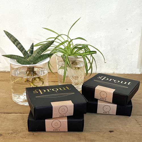 お好みのガラス容器を選び、それに水を満たして種子を置いたプレートをのせて、植物が水の中で育っていく過程をお楽しみいただけます。