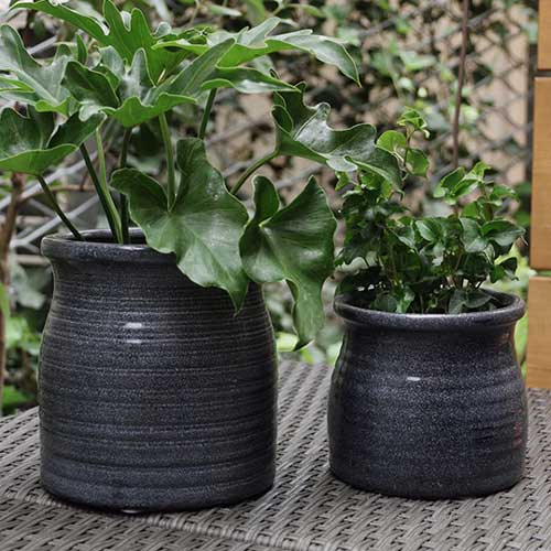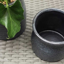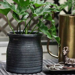 石器素材で重厚感があり、印象的なブラックカラーで色の濃い植物とも相性がぴったりです。