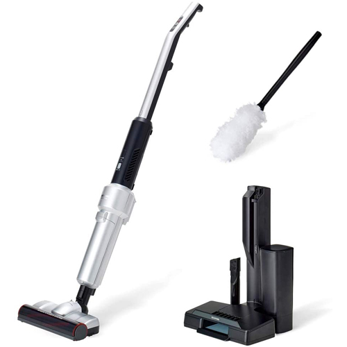 手軽に使えるスティッククリーナーとハンディモップで、「ついで」掃除が気軽にできる極細軽量スティッククリーナーです。ハンドルの強度と持ちやすさがアップし、さらに使いやすくなりました。(当社従来品 IC-SLDCP5と比較)業界初「静電モップクリーンシステム」搭載。静電気でホコリを吸着しスタンドで除電、クリーナーでホコリを吸引するから何度も使えて経済的です。モップの持ち手をリニューアル、マグネットで本体に固定できるので、掃除中に本体からモップが離れません。当社従来品(IC-SLDCP5)より約3cmワイドになり自走感がアップした自走式パワーヘッド搭載。少ない力でぐんぐん進み、パワーブラシでゴミをかき出し吸い取ります。ほこり感知センサー搭載で、ゴミ・ほこりの量を見分けてパワーを調節するので電池が長持ちします。自立するクリーナーからパッと手を離し、モップを取り出してサッと掃除ができます。モップは伸縮するので高いところの掃除もラクラクです。ダストパックを収納できるようスタンド横に設置できるダストパックケースも追加しました。紙パック式でゴミ捨て簡単。抗菌・防臭加工の不織布製ダストパックでいつでも清潔です。