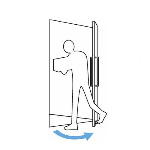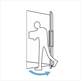 手でハンドルに触れずに足で扉を開閉できます。